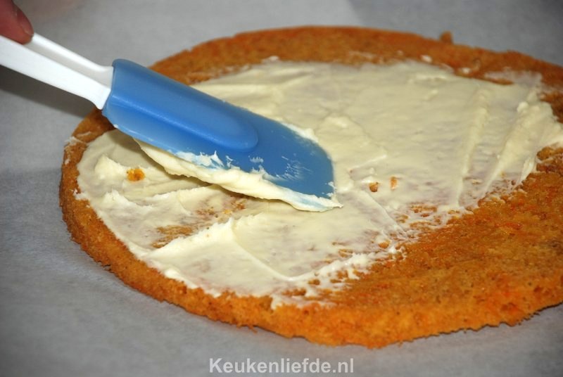 Worteltaart besmeren met botercréme