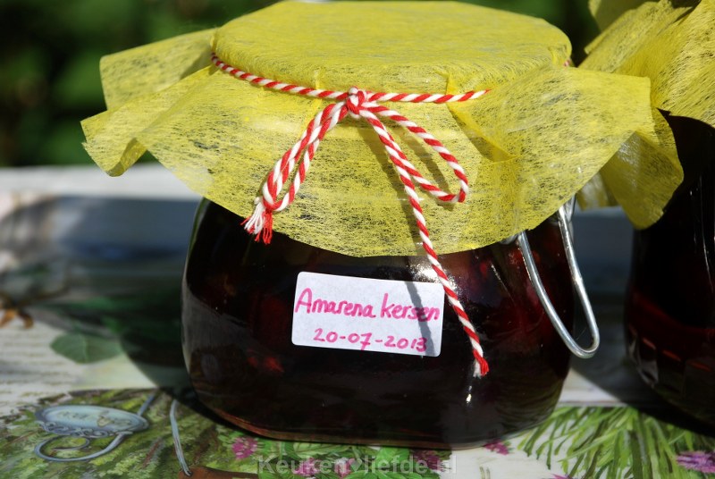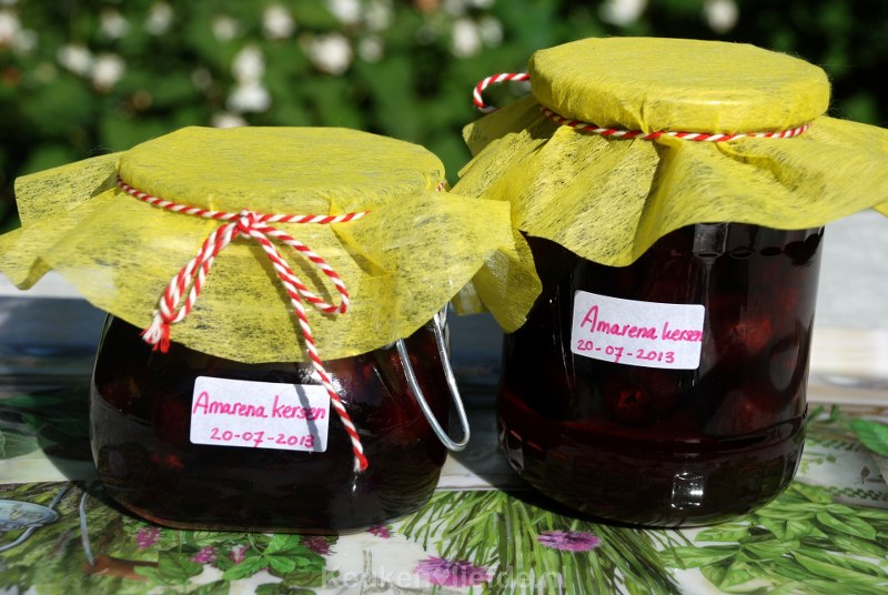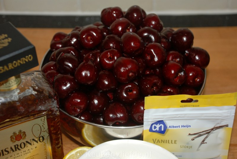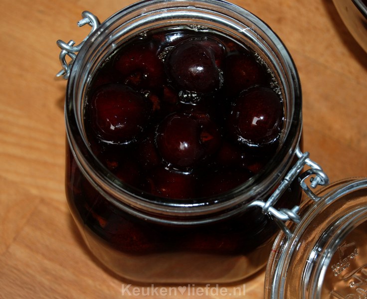 Ik was onder de indruk dat dit een siroop moest worden dus bleef ik mijn kersen ‘wat’ langer inkoken en zijn ze nu te plat geworden vind ik. ‘Wat’ inkoken is trouwens echt heel erg vaag… Daar moet een betere tijdaanduiding voor zijn vind ik. De kersen scheiden enorm veel af dus is het misschien verstandiger (als men de vorm wilt behouden) om de kersen uit de pot te doen voor een 10 minuten en achteraf weer mee te laten koken. Of de sap alleen te laten inkoken.. Ik weet het niet. Mijn kersen trekken in ieder geval op niks door het opvolgen van dit recept.