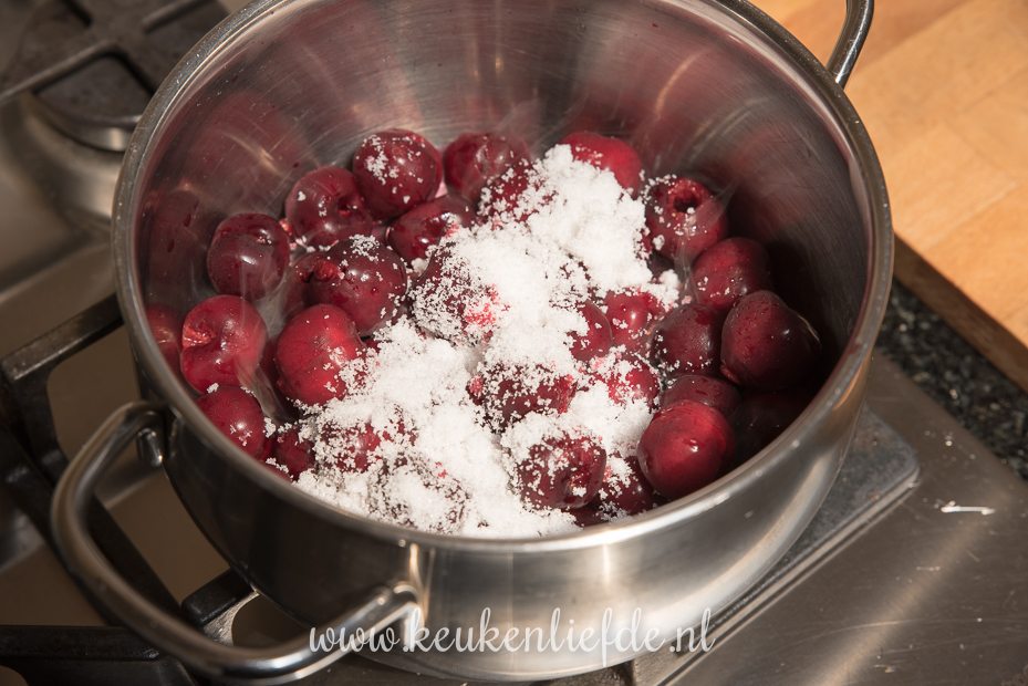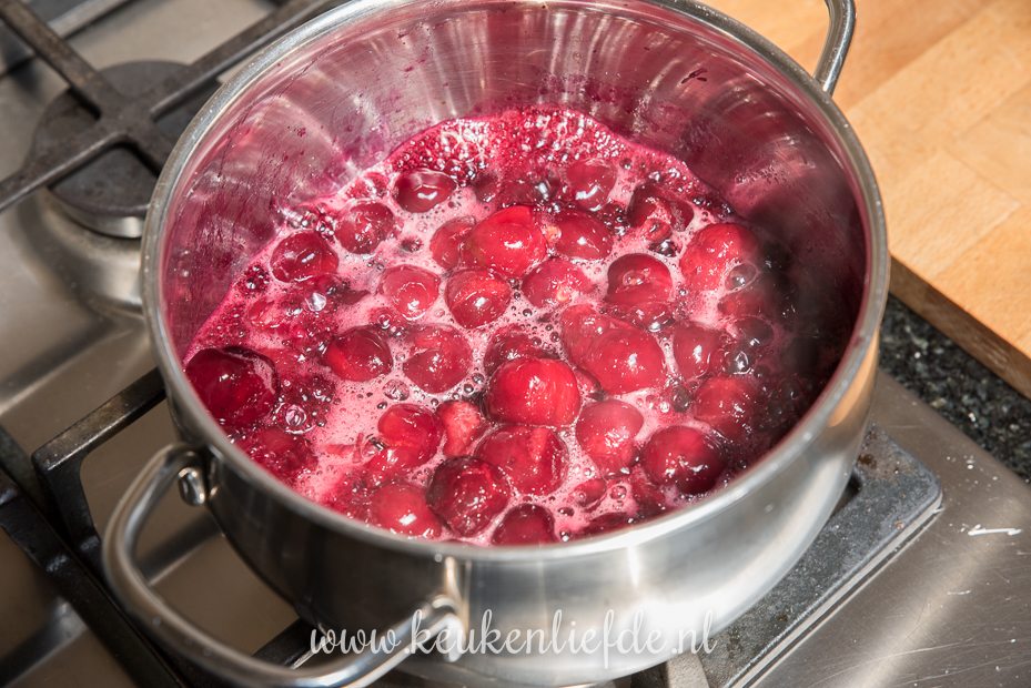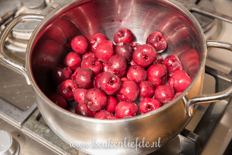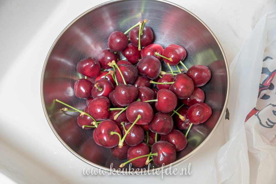 Wat is het toch heerlijk om in te Betuwe te wonen. Zeker nu overal de fruitkramen weer aan de weg staan, afgeladen met het lekkerste fruit. Kersen, aardbeien, frambozen, bramen; kneitervers en bommetje vol smaak! Omdat ik nog niet zoveel recepten heb gedeeld met verse kersen, besloot ik zelfgemaakte kersencompote te maken. Heerlijk om als topping te gebruiken voor monchoutaart! En helemaal niet moeilijk om te maken. Je hebt maar drie ingrediënten nodig.