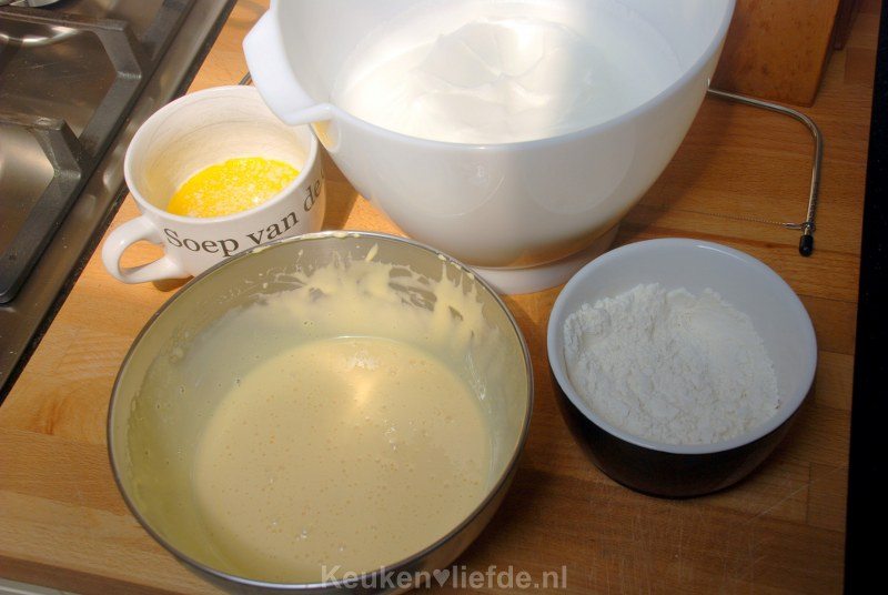 Zet alle ingrediënten voor het biscuit klaar, want je moet nu snel gaan werken.