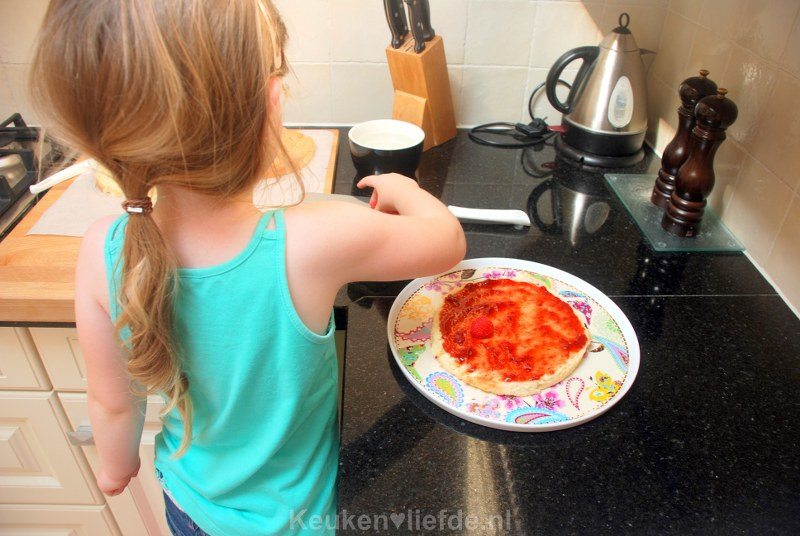 - 3 tot 4 el aardbeien-, of frambozenjamm