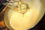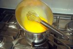 Klop ondertussen de eigelen met de overige suiker (au bain marie) in een hittebestendige kom bovenop een pannetje gevuld met heet water – niet laten koken, dan krijg je roerei! – tot een dik en romig mengsel. Haal de pan direct weg van de warmtebron zodra het mengsel goed is.